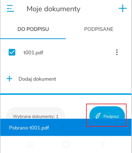 - Zaznacz dokument PDF i kliknij Podpisz.